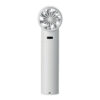 Ventilador mini de mano en ABS con pantalla de visualización y 5 ajustes de velocidad. Incluye batería de litio recargable reemplazable de 2600 mAh.