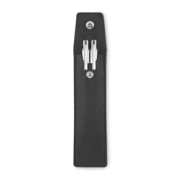 Estuche de fieltro RPET (para 2 bolígrafos) con cierre de botón a presión.