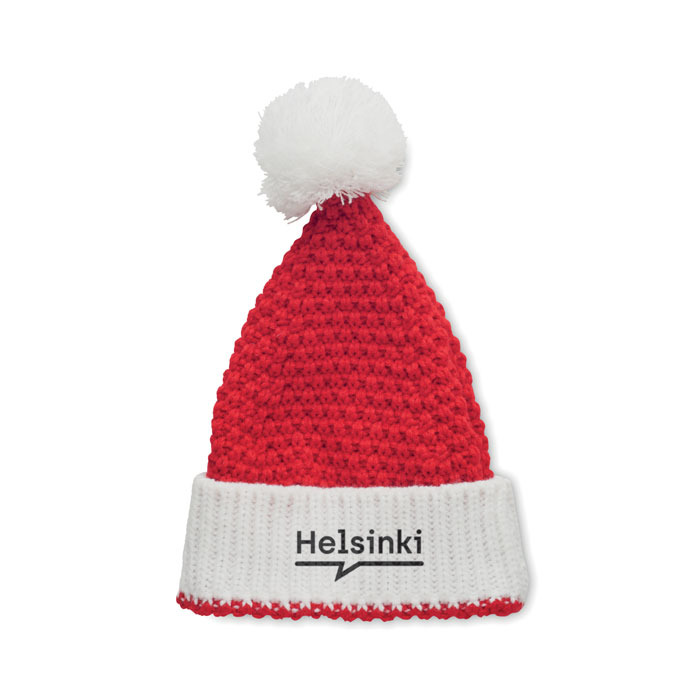 Gorro de punto navideño con puño y borla hecho en suave acrílico elástico.