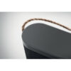 Altavoz inalámbrico 5.3 de 15 W en ABS con acabado en tejido de poliéster RPET y parte superior de bambú con asa de yute. Batería recargable de iones de litio de 1200 mAh. Datos de salida: 5W, 4 Ohm y 5V. Tiempo de reproducción aprox. 4h.
