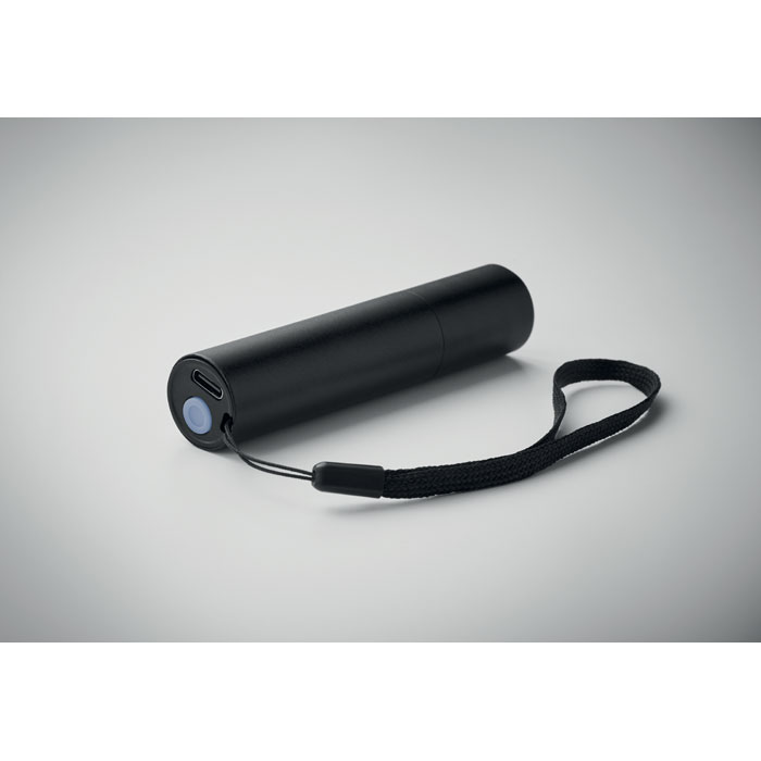 Linterna recargable de aluminio de 110 lúmenes con 3 ajustes de luz y función de acercar/alejar. Batería recargable incorporada de 400 mAh y cable de carga incluidos.