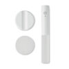 Linterna de emergencia con sensor en ABS y acrílico con base magnética. Batería recargable de 300 mAh incorporada y cable de carga. La base se puede pegar en la pared con el adhesivo 3M incluido.