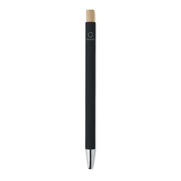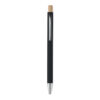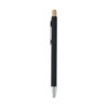 Bolígrafo de aluminio reciclado con pulsador de bambú. Punta y clip plateados. Tinta azul.
