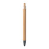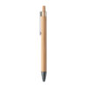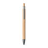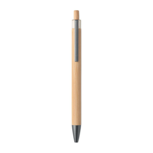 Bolígrafo con pulsador, cuerpo de bambú y clip metálico. Tinta azul.