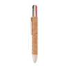 Bolígrafo de 4 colores con cuerpo de corcho y accesorios de paja de trigo (50%) y plástico ABS (50%). Tinta rojo, verde, azul y negro.