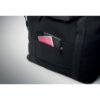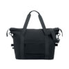 Bolsa de fin de semana de algodón preconsumo reciclado y poliéster reciclado (70%/30%) con forro poliéster RPET 210D. Tiene bolsillo frontal con cremallera, bolsillo trasero y cremallera, una correa para hombro ajustable y desmontable. Fondo acolchado. Soporte trolley.