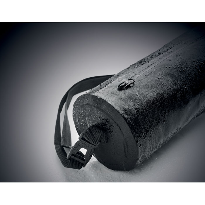 Bolsa deportiva de RPET 300D con revestimiento de PVC. Dispone de tirantes desmontables y ajustables. Tejido resistente al agua. Capacidad 3L.