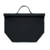 Bolsa nevera de algodón reciclado con cierre rolltop de gancho. Aislamiento de espuma de PE de 3 mm con PEVA de 12C.