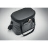 Bolsa nevera en lona 50C y parte superior/inferior en PEVA rígido. Contiene abrebotellas en lateral. Bolsillo frontal y bolsillo interior de malla. Material de aislamiento: Capa de espuma PE. Incluye 2 asas y 1 correa ajustable y desmontable. Capacidad 16L.