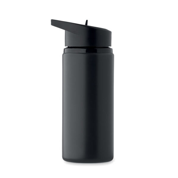 Botella de acero inoxidable reciclado (90% acero inoxidable reciclado y 10% acero inoxidable) de pared simple con boquilla plegable en la tapa, pajita y asa de transporte. Capacidad: 500 ml. Al tratarse de una botella de una sola pared, puede producirse una transferencia de calor.