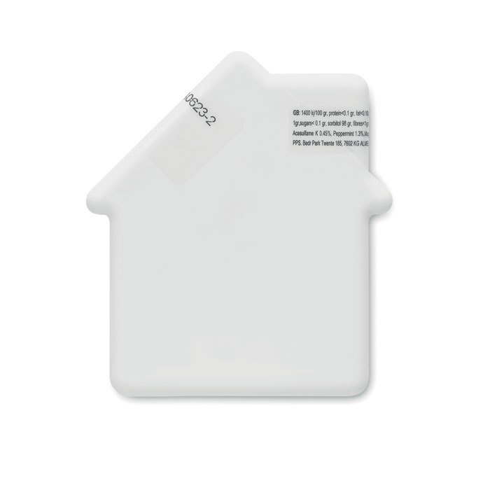 Expendedor de caramelos en forma de casa. 8 gramos de caramelos de menta incluidos.