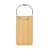 Etiqueta de equipaje de bambú con cuerda de acero inoxidable.