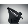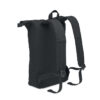 Mochila con cierre rolltop con cremallera para portátil de 15”, de algodón reciclado preconsumo y poliéster reciclado (70%/30%). Bolsillo frontal con cremallera. Espalda y hombreras acolchadas. 340gr/m².