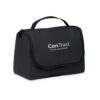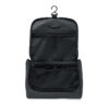 Neceser organizador en suave PU con gancho para colgar y forro de RPET 210D. Un compartimento principal grande con compartimento interior de malla con cremallera y 1 compartimento de malla.