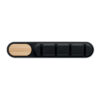 Organizador de cables de silicona con detalle de bambú natural. Su diseño ovalado y compacto mantiene los cables ordenados y seguros.
