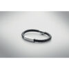 Brazalete trenzado de piel sintética con herrajes de acero pulido. Cierre de presión. Circunferencia de la muñeca: 19 cm.