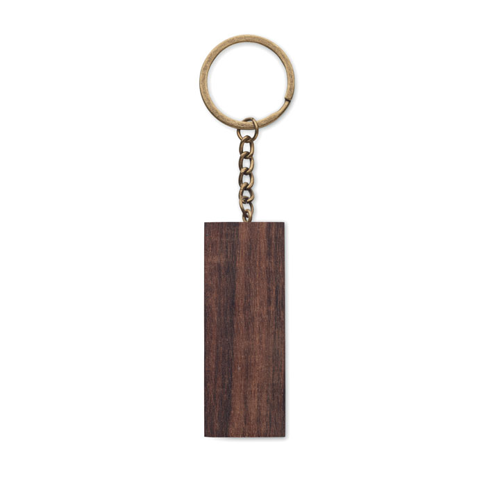 Llavero con soporte para teléfono en madera de nogal.